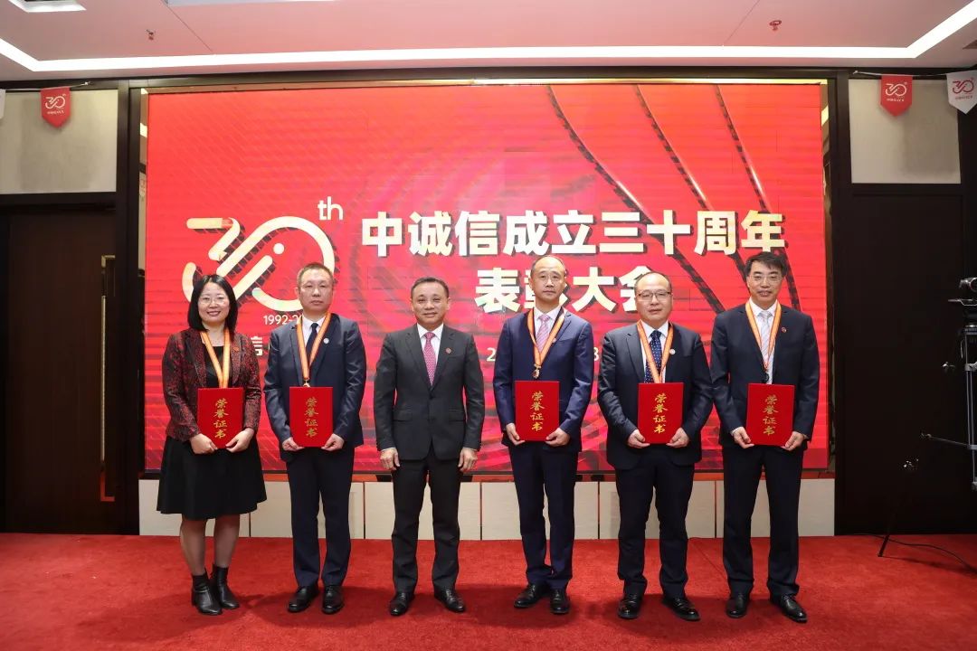 同時,為表彰在集團發(fā)展中做出突出貢獻,辛勤付出的先進個人,鼓勵廣大中誠信人追求卓越、為奮力譜寫中誠信新的事業(yè)篇章而努力奮斗,公司分別頒發(fā)10枚金質(zhì)勛章和25枚銀質(zhì)勛章;為5位在不同歷史時期做出貢獻的同事頒發(fā)“特殊榮譽獎”;對4位在中誠信發(fā)展歷史上做出特別重大貢獻的同事頒發(fā)“特別貢獻獎”。為了感謝和致敬集團創(chuàng)始人、董事長毛振華對中國評級事業(yè)做出的探索與深遠影響,并帶領中誠信從一個時代夢想起步,披荊斬棘,奮楫前行,成長為一棵中國企業(yè)之林中的青茁秀木,勇立中國信用評級行業(yè)的浪首,慶典上授予毛振華董事長“創(chuàng)始人紀念獎章”。